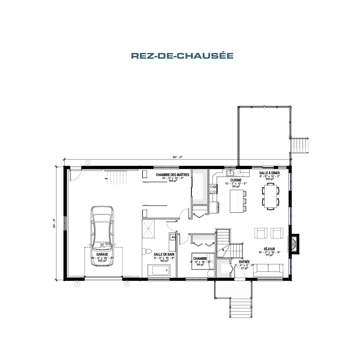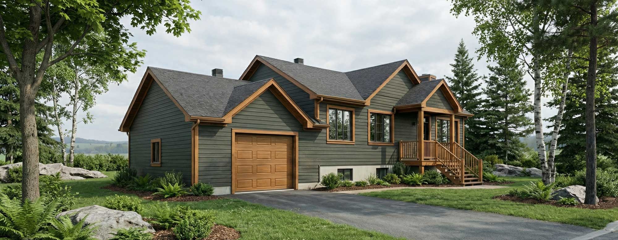 Ce bungalow farmhouse combine charme rustique et confort moderne dans un aménagement chaleureux et fonctionnel. Son aire de vie ouverte relie le séjour, la salle à manger et la cuisine avec îlot central, créant un espace convivial et lumineux. La maison comprend 2 chambres confortables et une salle de bain complète, dont une chambre des maîtres bien dimensionnée. Le garage intégré ajoute une touche pratique à ce modèle au style accueillant et intemporel.