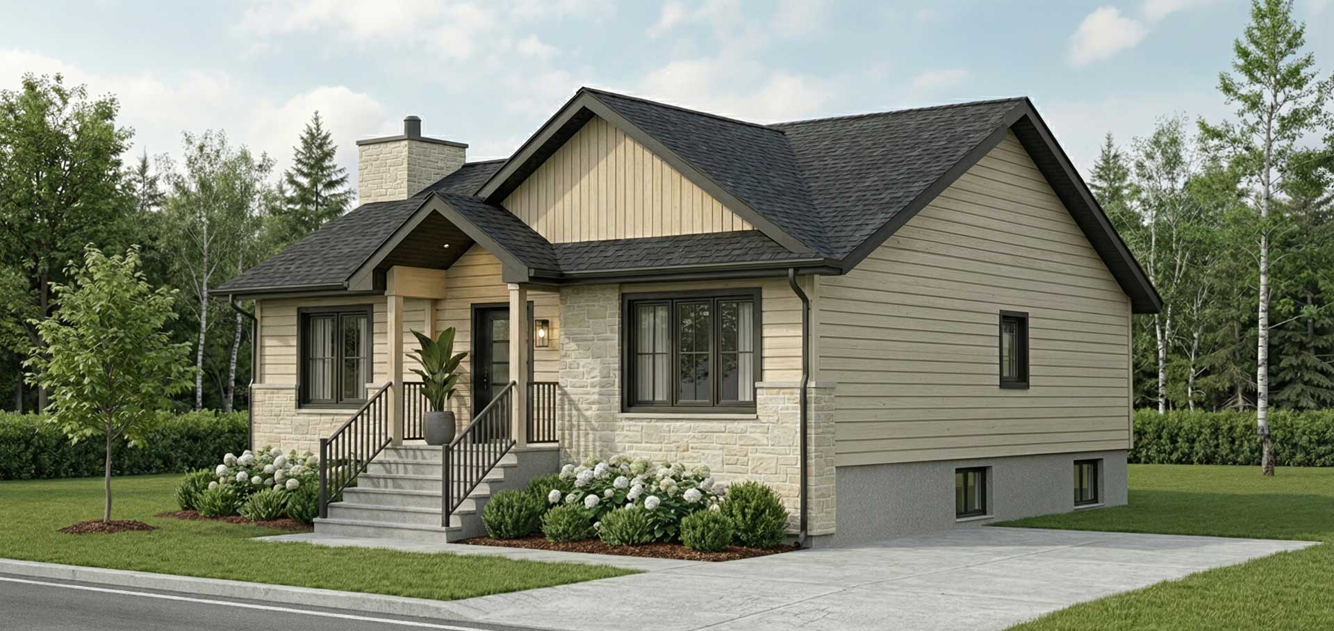Ce plain-pied contemporain propose un aménagement fonctionnel et lumineux, idéal pour la vie quotidienne. Son concept à aire ouverte relie harmonieusement le séjour, la salle à manger et la cuisine avec îlot central. La maison comprend 2 chambres confortables et une salle de bain complète, ainsi que plusieurs espaces de rangement pratiques. Un modèle bien pensé offrant simplicité, confort et style contemporain.